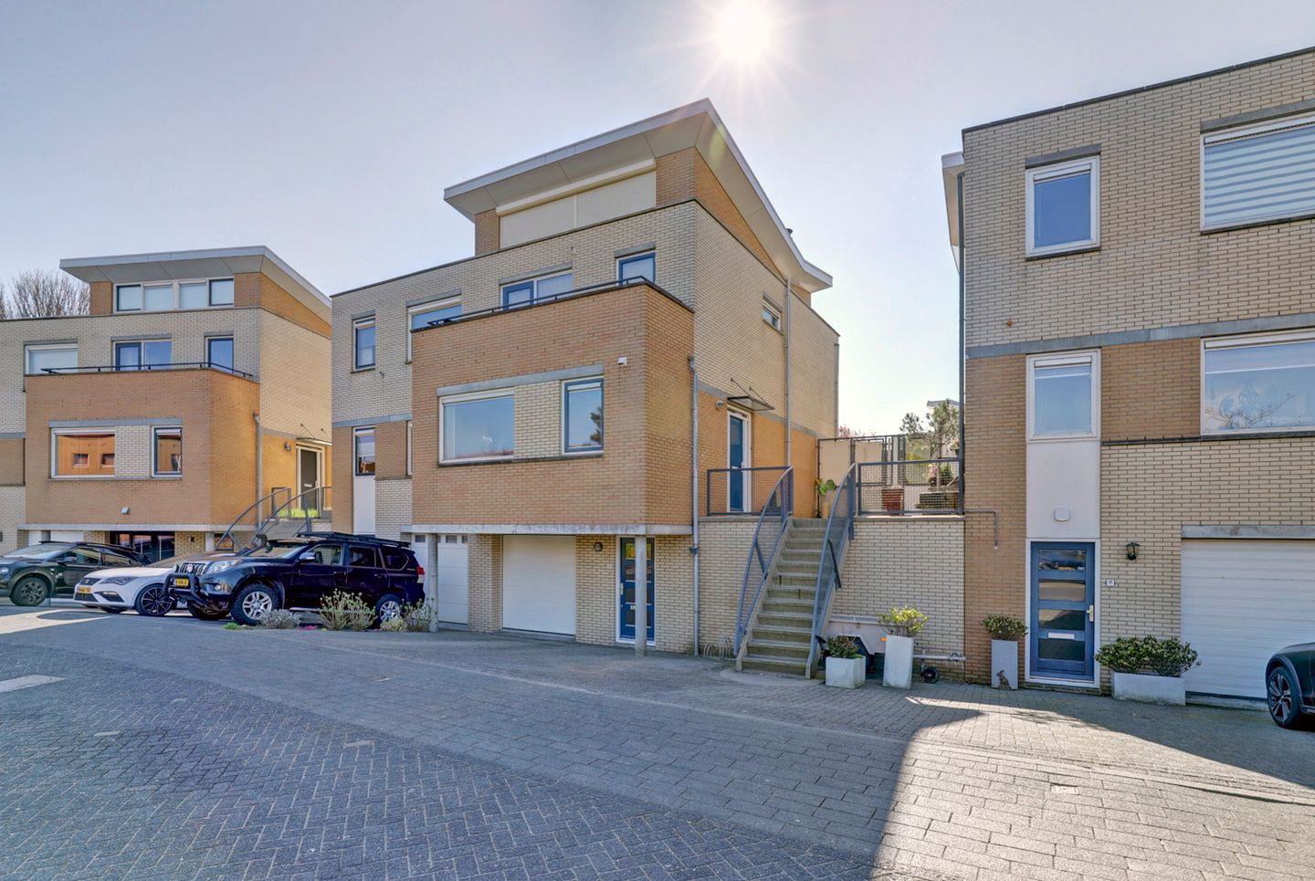 Ruime oprit met parkeergelegenheid voor meerdere auto’s op eigen terrein, direct voor de garage. Via zowel de garage én een aparte loopdeur is er toegang tot de hal met meterkast, trap naar de woonverdieping en een interne doorgang naar slaap/werkkamer. In de garage bevindt zich een verhoogde opstelplaats voor de wasmachine en droger.