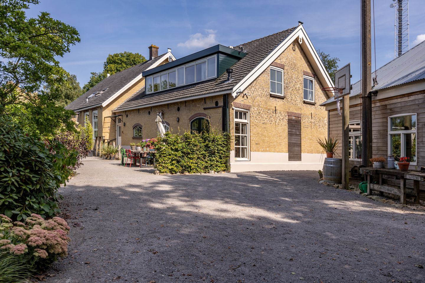 Het terrein is multifunctioneel met links de hooiberg, omgetoverd tot een vrijstaande woning en rechts de boerderij, eigenlijk het deel waar lang geleden nog de koeien stonden in de winter.