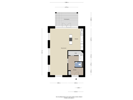 ‘’Deze informatie is door ons met de nodige zorgvuldigheid samengesteld. Onzerzijds wordt echter geen enkele aansprakelijkheid aanvaard voor enige onvolledigheid, onjuistheid of anderszins, dan wel de gevolgen daarvan. Alle opgegeven maten en oppervlakten zijn indicatief."