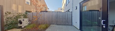 Je komt binnen via de brede hal met modern toilet. Vanuit hier stap je de tuingerichte woonkamer in, waar grote raampartijen en openslaande deuren zorgen voor een prachtige lichtinval. De fraaie lichte gietvloer met vloerverwarming geeft warmte en sfeer, terwijl de individuele thermostaten in elke ruimte zorgen voor perfect comfort op maat.