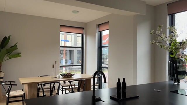 Je komt binnen via de ruime hal met toilet en trapopgang. De begane grond is een heerlijke lichte ruimte van ca. 80 m² met een luxe woonkeuken. Koken doe je hier aan het kookeiland, met hoogwaardige inbouwapparatuur en stijlvol afgewerkte kasten. Dankzij de uitbouw aan de zijkant is de eetruimte perfect gepositioneerd met uitzicht op de gracht.