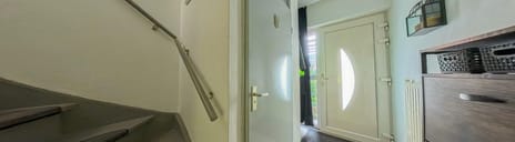 Entree, 5 m² v.v. laminaatvloer, stucwerk en trapopgang.