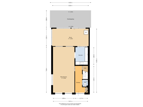 De begane grond beschikt over een entree met trapopgang en toiletruimte. De woonkamer (27 m²) heeft een laminaatvloer en rolluiken aan de voorzijde. De halfopen keuken (6 m²) is voorzien van diverse inbouwapparatuur, waaronder een oven, koelkast, vriezer, 4-pits kookplaat, spoelbak, designradiator en Quooker-kraan. De serre (18 m²) vormt een fijne uitbreiding van de leefruimte en is uitgerust met vloerverwarming, laminaatvloer, pelletkachel en een schuifpui naar de tuin.
