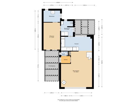 Bijkeuken ca. 5 m² met aansluitingen voor witgoed en extra bergruimte.