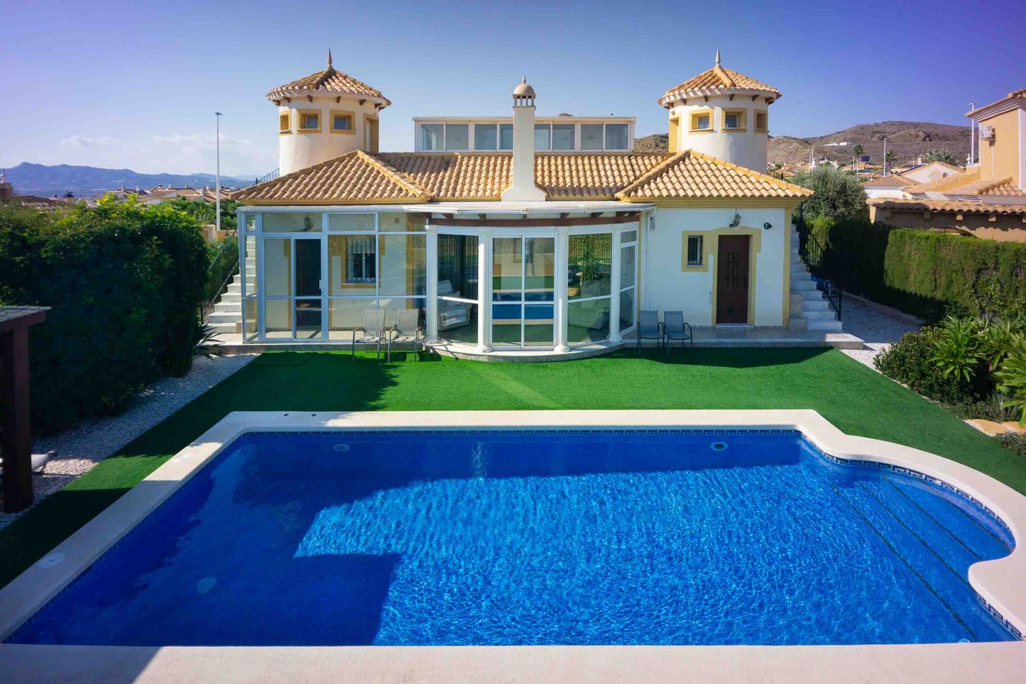 Het ruime solarium bevat een bestaande extra serre met potentieel om te worden gerenoveerd tot extra woonruimte (hiervoor is een vergunning nodig van de gemeente Mazarrón, informatie beschikbaar).