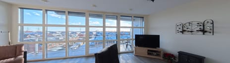 De woonkamer is lichtrijk en bovenal ruim opgezet, heeft een L-vorm en is voorzien van een pvc-vloer. Dankzij de glazen pui over de volledige breedte van de woonkamer is er veel natuurlijke lichtinval. Via de openslaande deuren heeft u toegang tot het op het zuiden gelegen balkon, waar u kunt genieten van een fraai uitzicht over de omgeving van het Westland. De balkonzijde is voorzien van screens en een uitvalscherm, welke beide elektrisch kunnen worden bediend.