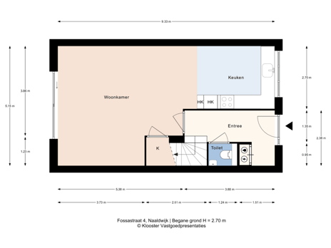 - 53 m² (9,70 meter diep en 5,42 meter breed)