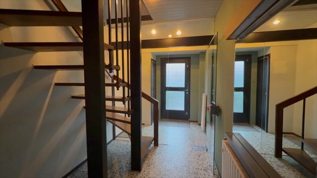 Bij binnenkomst treft u een voorportaal met een fraaie mozaïektegelvloer en een hardglazen deur naar de hal. Vanuit deze centrale hal heeft u toegang tot het toilet met fonteintje, de trap naar de eerste verdieping en de woonkamer. De lichte doorzonwoonkamer is een heerlijke ruimte, sfeervol afgewerkt met een eiken parketvloer en voorzien van een open haard voor extra warmte en gezelligheid.