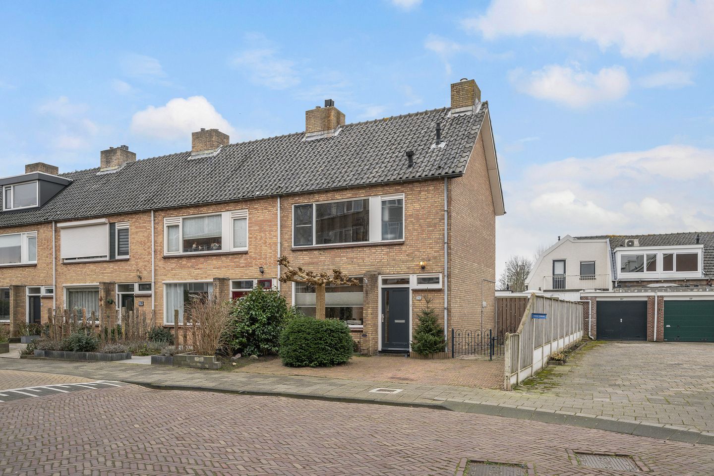 siertegels, deels houten- en deels steen/glas erfafscheidingen;