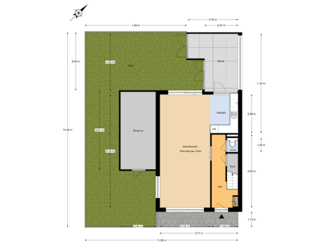 - 42 m² (14,00 meter diep en 3,00 meter breed)
