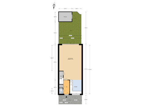 - 38 m² (7,45 meter diep en 5,15 meter breed)