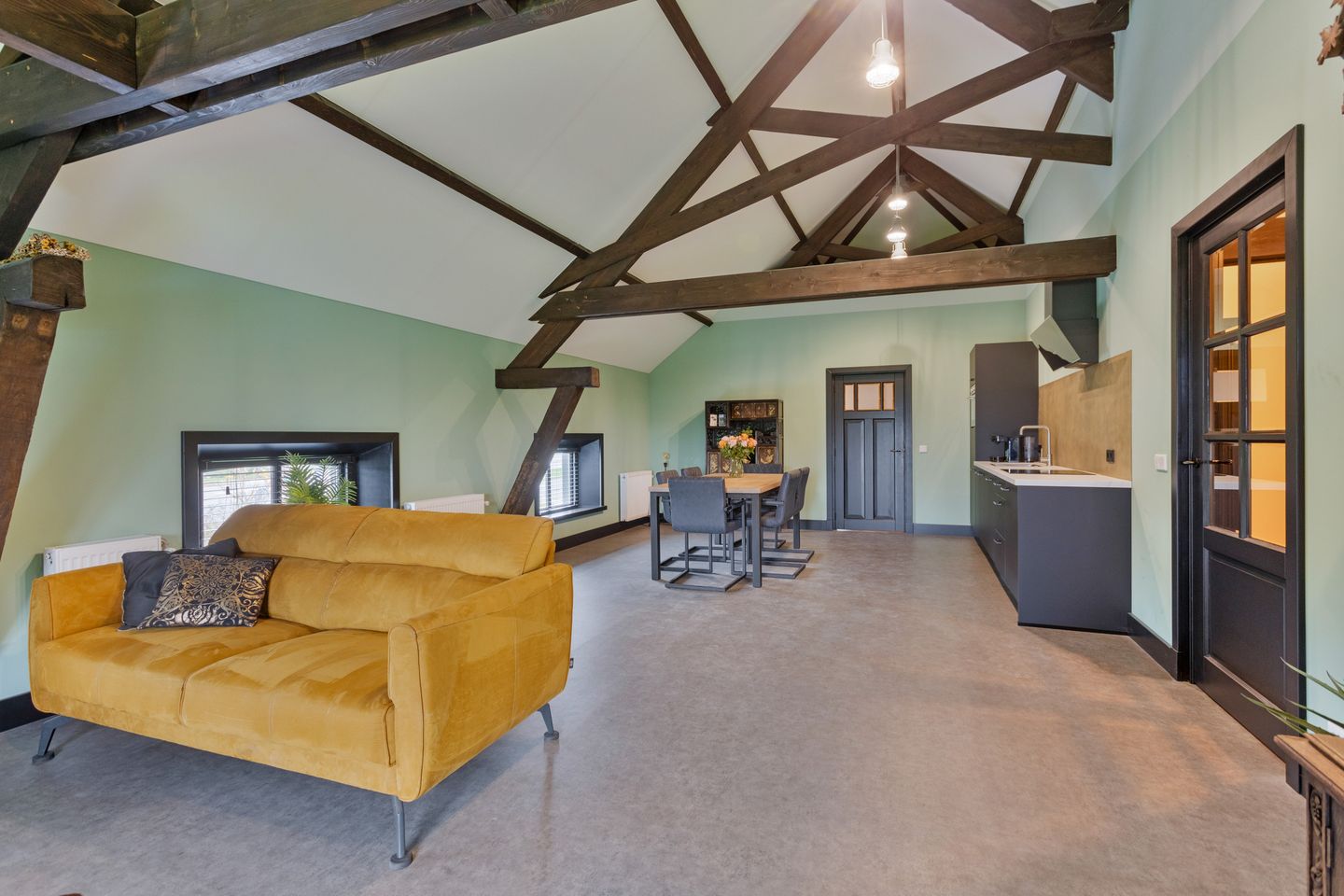 - Vloeren: Begane grond beton, 1e verdieping hout
