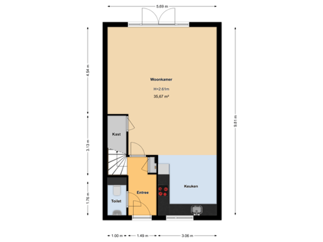 - 48 m² (8,00 meter diep en 6,00 meter breed)
