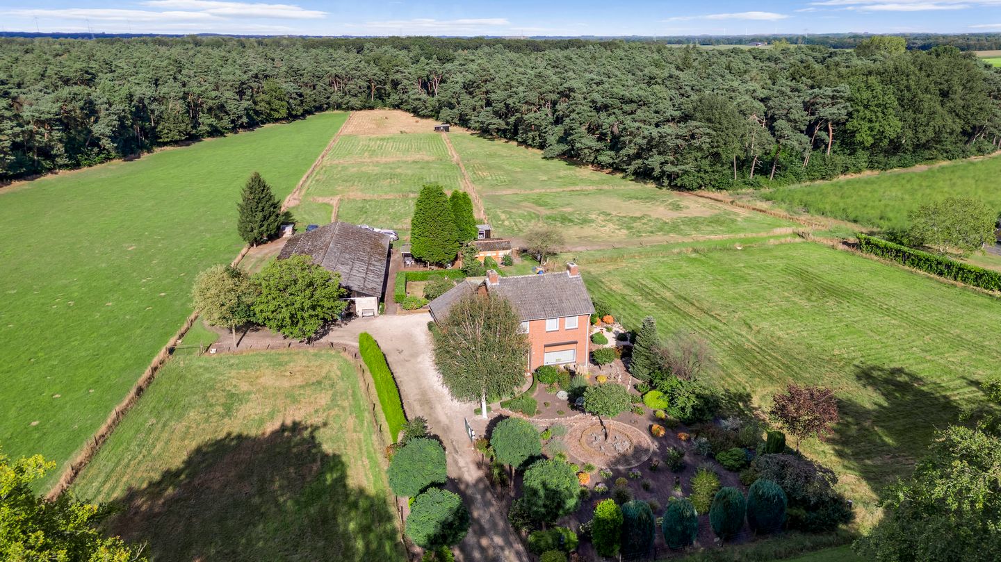 In het buitengebied van Nederweert Eind, gelegen te midden van bosgebied, bieden wij te koop aan deze leuke, te moderniseren, vrijstaande woning met diverse bijgebouwen en groot weiland, gelegen op een royaal perceel van bijna 1,5ha.
