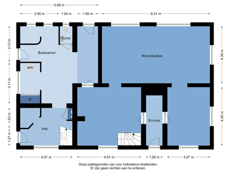 De woning beschikt over een entree/hal, woonkamer, voormalige keuken, gang, wasruimte, toiletruimte en multifunctionele kamer.
