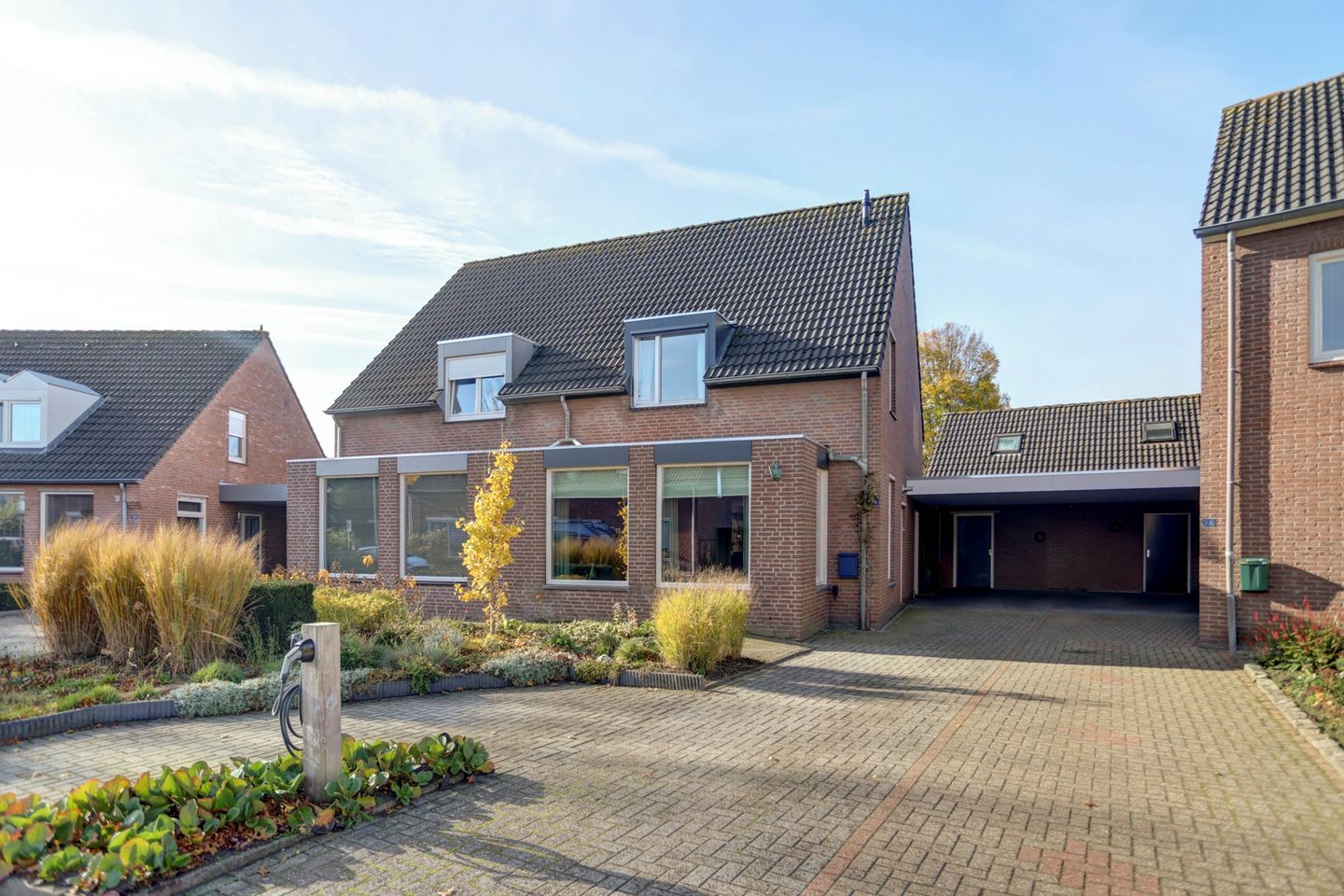 In een rustige en kindvriendelijke woonwijk van Neerkant staat deze royale twee-onder-een-kapwoning die aan zowel de voor- als achterkant flink is uitgebouwd. Hierdoor is er op de begane grond veel leefruimte ontstaan met een fijne, open sfeer. Bij binnenkomst valt direct de lichte woonkamer op. De vier grote raampartijen aan de voorzijde zorgen voor een heerlijke hoeveelheid daglicht en de ruimte biedt mogelijkheden voor meerdere zithoeken of een gezellig speelhoekje voor de kinderen. De doorkijkhaard vormt het sfeervolle hart van de begane grond en scheidt op subtiele wijze de woonkamer van de keuken. De open keuken ligt aan de tuinzijde en is uitgerust met een inductiefornuis, diverse inbouwapparatuur en veel kastruimte. Terwijl je kookt of afwast geniet je van een prettig uitzicht op de achtertuin. Aangrenzend bevindt zich een handige bijkeuken met inbouwkasten en de aansluitingen voor wasmachine en droger. Op de eerste verdieping liggen drie ruime slaapkamers waarvan één is voorzien van een grote inbouwkast. De badkamer is modern en compleet ingericht met een inloopdouche, dubbele wastafel met opbergmeubel, toilet en designradiator, een fijne plek om de dag fris te beginnen of ontspannen af te sluiten. Via een vaste trap bereik je de zolderverdieping waar een vierde slaapkamer is gecreëerd met twee Velux-dakramen en extra bergruimte onder het schuine dak. De achtertuin is groen en verzorgd aangelegd met een terras direct achter de woning en een tweede zitplek onder de overkapping bij de garage. De garage beschikt over een verdieping met vaste trap, ideaal als berging of hobbyruimte. Voor de garage ligt een oprit met carport waardoor je altijd voldoende parkeerruimte hebt. Dankzij de aanwezigheid van 14 zonnepanelen zijn de energiekosten bovendien aantrekkelijk laag.