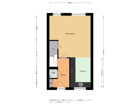 - 47 m² (10,50 meter diep en 5,10 meter breed)