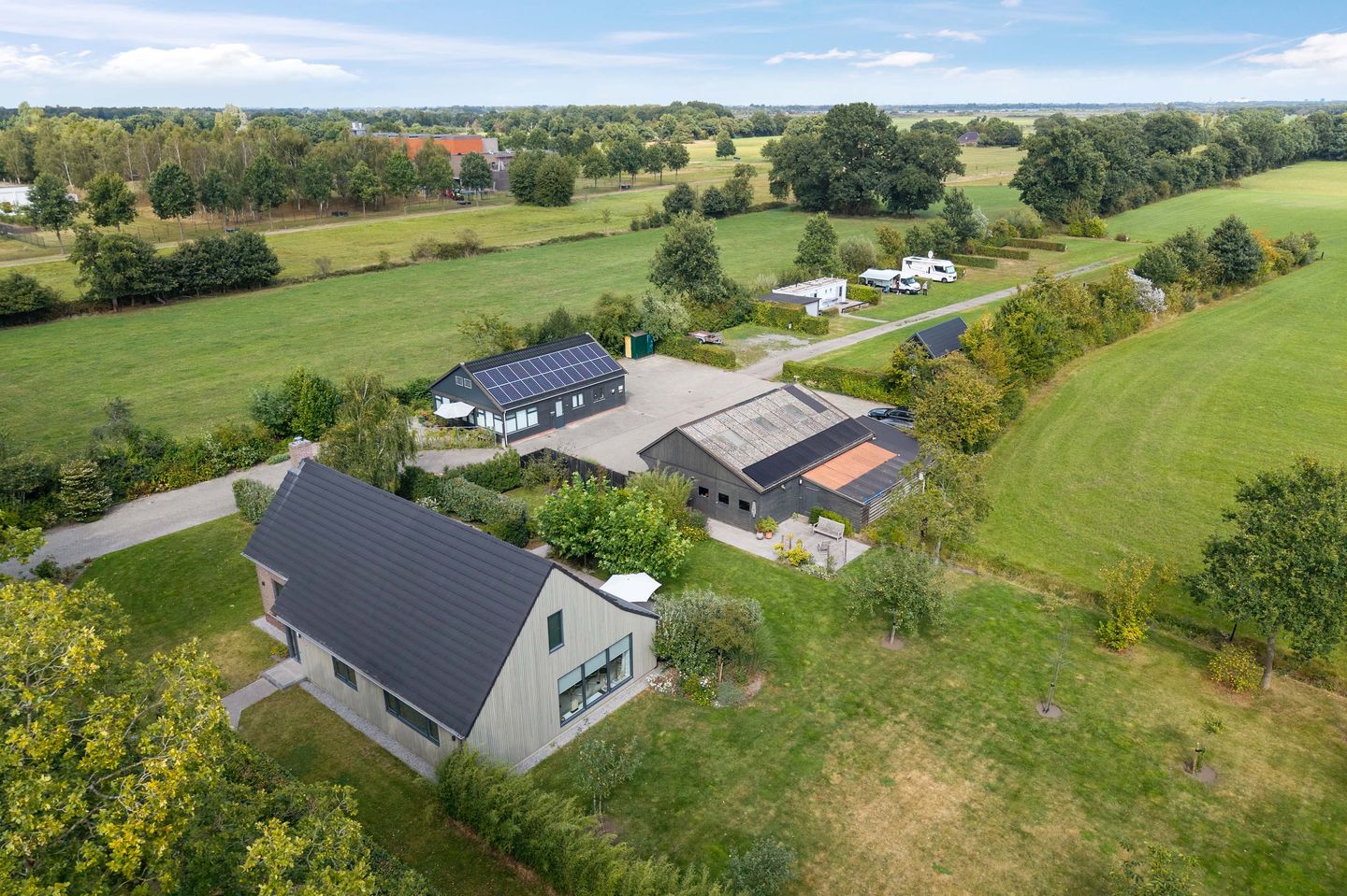 Aan de achterzijde van dit gebouw bevindt zich nog een grote schuur/hangar met toilet en een elektrisch bedienbare overheaddeur van 4,5 meter hoog, ideaal voor bijvoorbeeld het stallen van uw camper.