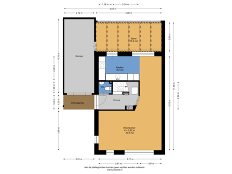 - 121 m² (11,00 meter diep en 11,00 meter breed)