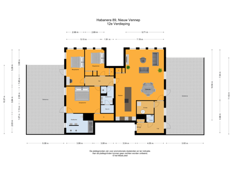 Twaalfde verdieping: vanuit de lift komt u in de gemeenschappelijke hal.