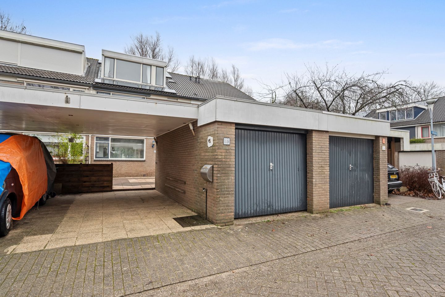 - Carport en vrijstaande stenen garage
