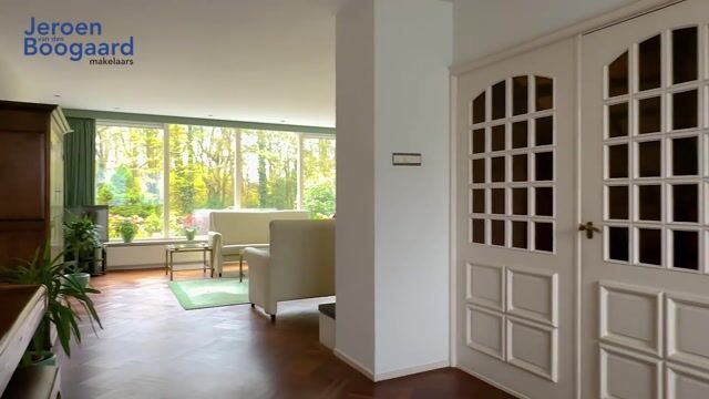 Begane grond: entree in een royale hal met meterkast, toilet met fontein, deur naar de garage en trap naar de eerste verdieping. Openslaande deuren geven toegang tot de living die is ingedeeld met een woonkamer aan de achterzijde en de keuken en eetkamer aan de voorzijde van de woning. De uitgebouwde en tuingerichte woonkamer is heerlijk licht door de grote ramen en heeft een mooie parketvloer en een gezellige open haard. Middels openslaande deuren kom je in de zonnige achtertuin.