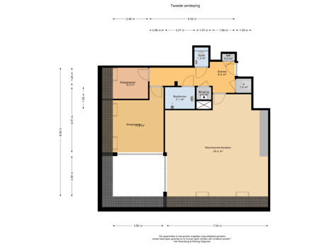 Op de tweede verdieping vind je dit mooie hoekappartement van circa 82.2 m2, met een sfeervolle loggia op het zuiden en oosten. De lange, royale hal van circa 10 m2 geeft toegang tot de woonkamer met open keuken, de slaapkamers, de badkamer, twee bergingen en de toiletruimte.