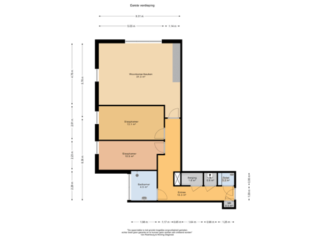 Op de eerste verdieping, aan de linker achterzijde, kan dit lichte driekamerappartement van circa 79.7 m2 met een balkon op het zonnige westen jouw nieuwe (t)huis worden. De royale hal van circa 14.4 m2 geeft toegang tot de woonkamer en keuken, twee slaapkamers, de badkamer, twee bergingen en de toiletruimte.