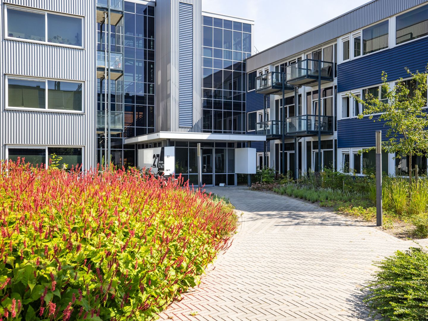 De woningen zijn onderdeel van een modern complex met een representatieve, ruimtelijke en lichte centrale entree. De centrale entree is voorzien van een lift en buiten een mooie binnentuin, voldoende fietsplekken en een groot collectief parkeerterrein. Uw woning bevindt zich aan een overdekte corridor, wat zorgt voor een veilige en beschutte toegang.