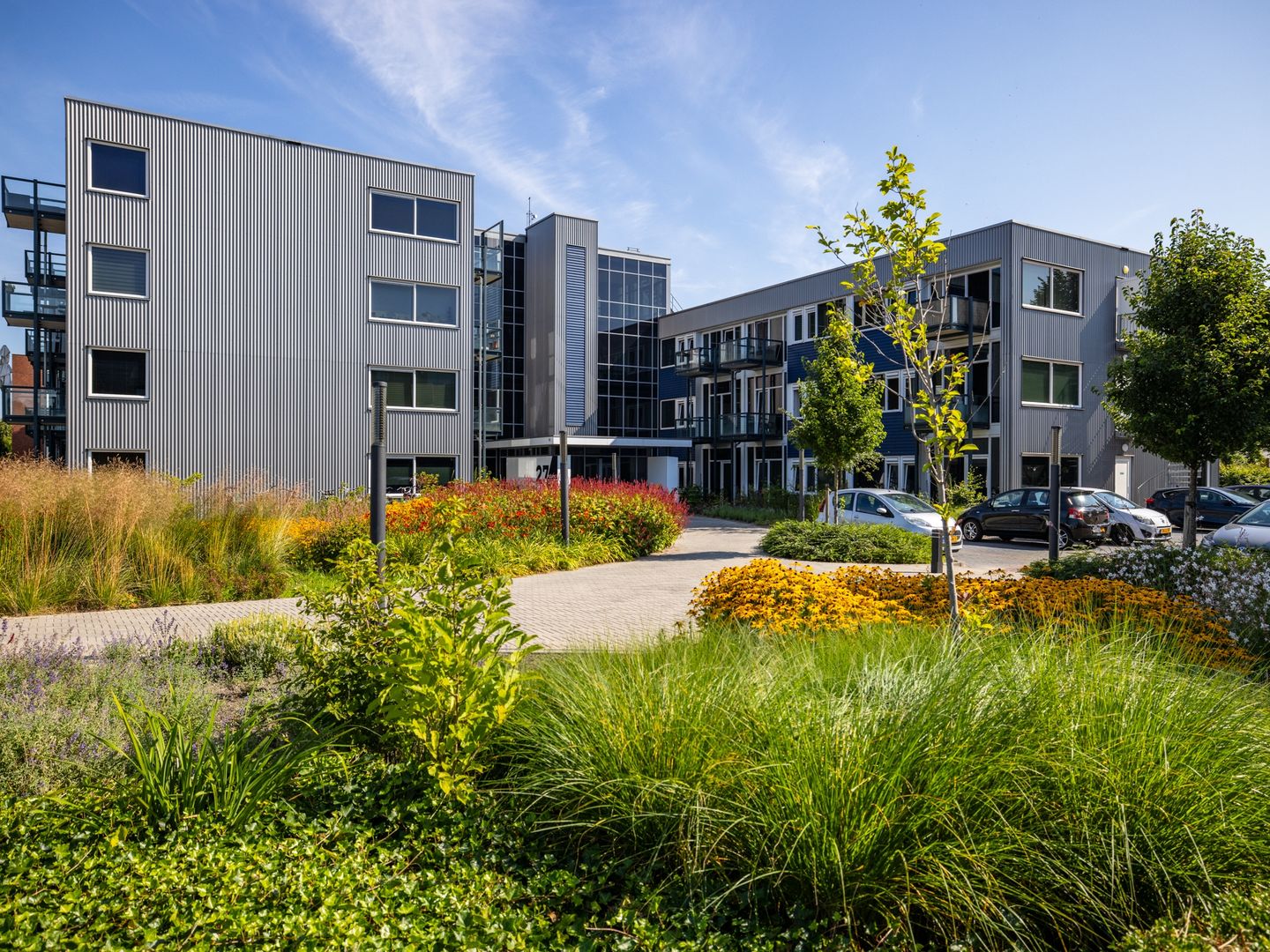 De woningen zijn onderdeel van een modern complex met een representatieve, ruimtelijke en lichte centrale entree. De entree is voorzien van een lift en geeft toegang tot een collectieve binnentuin met voldoende fietsplekken en een groot collectief parkeerterrein. Uw woning bevindt zich aan een overdekte corridor, wat zorgt voor een veilige en beschutte toegang.