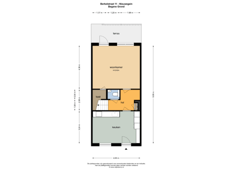 - 52 m² (10,75 meter diep en 4,80 meter breed)