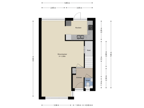 Met de voordeur achter je dicht, stap je een hal binnen waar daglicht en ruimte elkaar ontmoeten. Hier tref je het toilet; functioneel en netjes afgewerkt. De meterkast en de trapopgang vind je eveneens in deze uitnodigende entree. De woonkamer vloeit natuurlijk over in de keuken en biedt toegang tot de zonnige achtertuin. De open keuken fungeert als het hart van het huis, waar zowel snelle lunches als uitgebreide diners moeiteloos worden bereid.