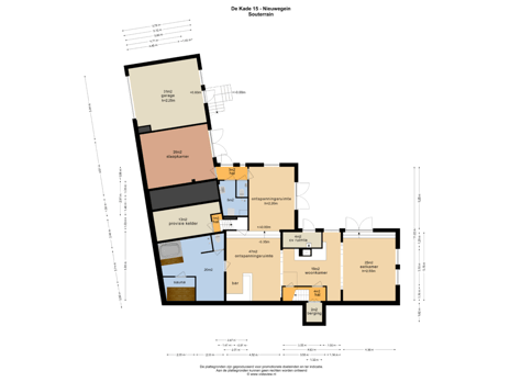 Aan de voorzijde heeft de woning twee verdiepingen, daar zie je de 554 m² woonruimte niet zozeer, aan de achterzijde is de ruimte bet zichtbaar: hier zijn de drie verdiepingen goed zichtbaar. Het souterrain is door zijn verrassende vetrekken en ruime indeling een volwaardige verdieping.