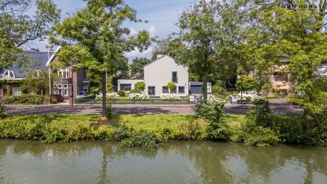 Aan de voorzijde is er zicht op het genoemde water, terwijl aan de achterzijde via een schuifpui met glas tot aan de vloer, genoten kan worden van het ruimtelijke zicht op de brede en diepe tuin achter het huis.