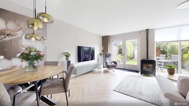 De woonkamer met een sfeervolle pelletkachel, ligt aan de achterzijde. Vanuit hier loop je via de openslaande deuren zo de tuin in. Binnen en buiten lopen hier mooi in elkaar over, ideaal voor lange zomeravonden. De tuin is ruim 13 meter diep