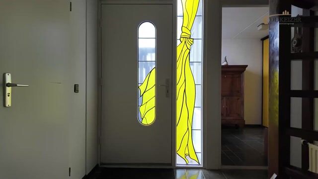 Entree, hal met toegang naar het toilet, de woonkamer en de werkkamer/bijkamer aan de voorzijde van de voormalige garage. Deze ruimte is 5 m² groot, verwarmd en heeft een grote vaste kast.