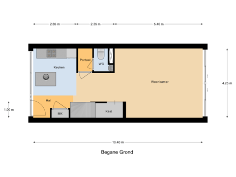 • Meterkast, trapopgang en portaal met toegang naar toilet
