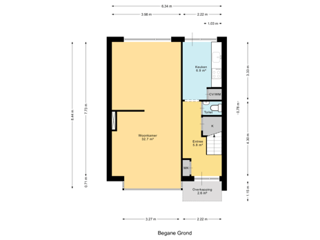 Zie de (interactieve) plattegronden voor de afmetingen van de woning.