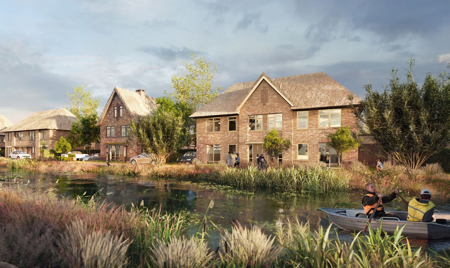 De riante twee-onder-één-kapwoningen type Rietgans liggen aan de rand van de polder, dichtbij de entree van Hart van Vrouwenakker. De landelijke architectuur met rieten kap geven de woningen een karakteristieke uitstraling die perfect aansluit bij de natuurrijke omgeving. Aan de voorzijde biedt Rietgans een schilderachtig vrij uitzicht over het polderlandschap, aan de achterzijde liggen de tuinen aan het water en groen. Hier geniet je optimaal van de charme van het landelijk wonen, in een riante en toekomstbestendige woning met ruimte voor al je woonwensen.