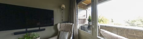 - Lichte woonkamer met brede raampartijen en een zonnig balkon