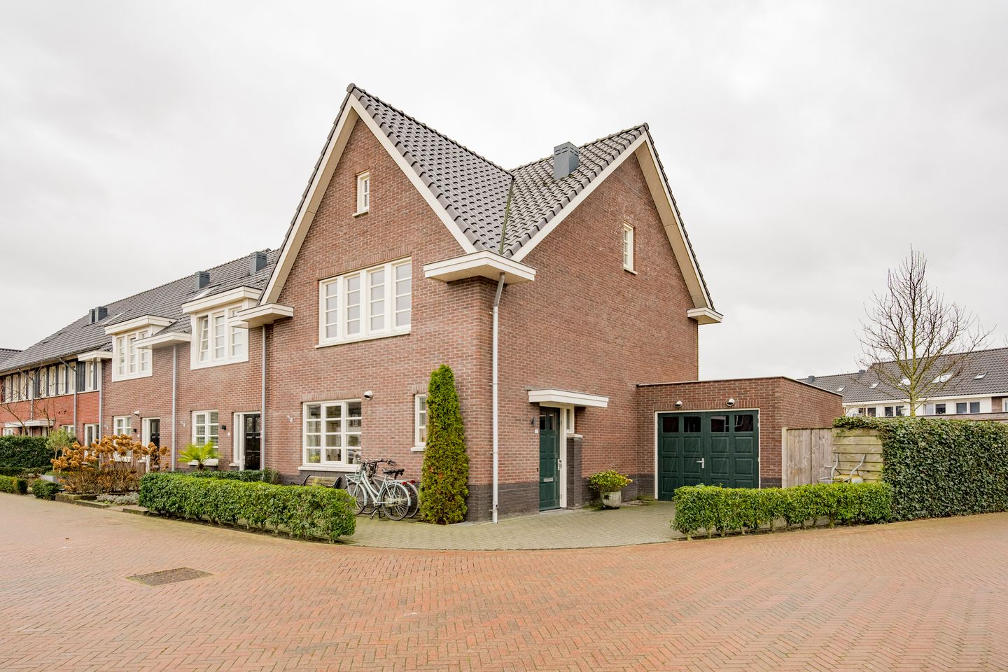 - moderne hoekwoning met een aangebouwde garage en een zonnige tuin op het Zuiden met een veranda