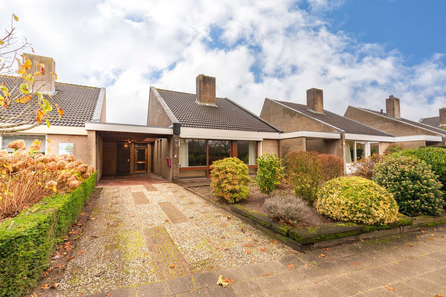 Begane grond: Via de eigen oprit, met ruimte voor twee auto’s en een overdekte entree loop je de woning binnen. In de hal vind je het separate toilet en toegang tot verschillende ruimtes. Aan de voorzijde bevindt zich de lichte woonkamer, waar de schuifpui voor een verbinding met buiten zorgt. De open haard geeft een fijne warmte en door de vide voelt de ruimte extra hoog en open. Aangrenzend ligt de open keuken, praktisch ingedeeld en met zicht op de woonkamer. Loop je verder, dan kom je in de bijkeuken, een ideale plek voor extra opslag en de wasmachine. Via de hal kom je bij de twee slaapkamers en de badkamer. De badkamer ligt centraal en biedt een goede basis om te moderniseren.