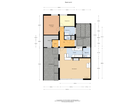 - 99 m² (9,00 meter diep en 11,00 meter breed)