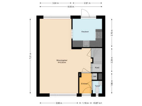 - 80 m² (12,07 meter diep en 6,60 meter breed)