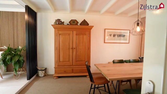 Begane grond: Via de zijkant van de woning bereikt u de entree. Bij de voordeur en garage is een ruime overkapping aanwezig. De ruime hal is voorzien van plavuizen en geeft toegang naar de toiletruimte met wandcloset en fonteintje, de woonkamer en woonkeuken. De woonkamer is heerlijk licht door de aanwezige raampartijen en heeft een gezellige houtkachel, dit gedeelte van de woning is voorzien van een houten vloer. Aan de achterzijde van de woning, ligt het wat lager gelegen eetgedeelte met uitzicht op de achtertuin. Dit gedeelte is voorzien van vloerbedekking. De wanden hebben deels een spachtelputz wandafwerking en deels houten wandpanelen. Er is een sierplafond aanwezig wat zorgt voor een knus geheel.