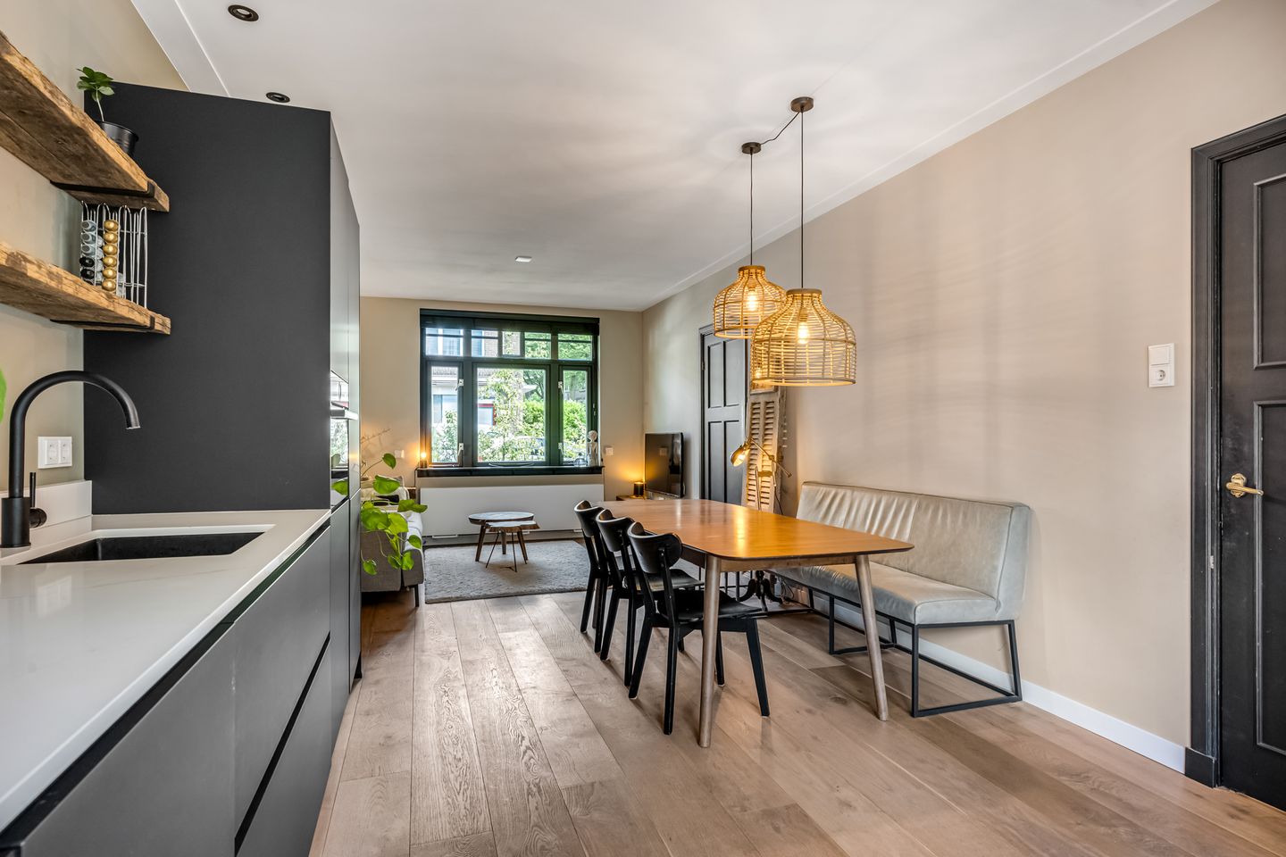 De open keuken heeft een stoere, luxe uitstraling en is uitgerust met een inductie kookplaat met afzuigkap, een combi oven/magnetron, een koel/vriescombinatie en een vaatwasser. Je beschikt over meer dan voldoende werk-, kast- en loopruimte.