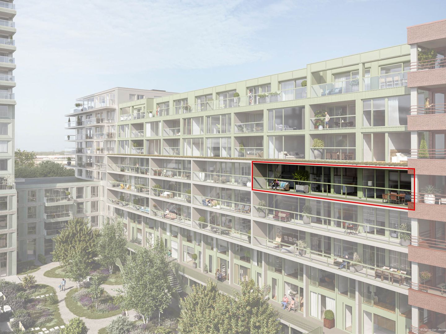 Geniet van het grote balkon met zicht op binnentuin.