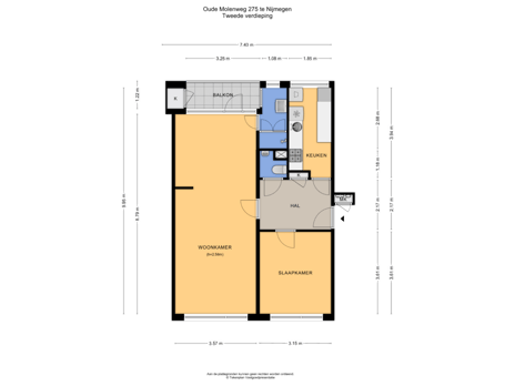 Entree van het appartement, hal met vaste kast, toilet met fonteintje en toegang tot de woonkamer, keuken en slaapkamer. Ruime woonkamer met veel lichtinval dankzij de grote raampartijen en toegang tot het balkon en de badkamer. Oorspronkelijk beschikte het appartement over een extra slaapkamer die bij de woonkamer is betrokken. Indien gewenst is hier weer eenvoudig een aparte kamer te realiseren. De badkamer is voorzien van een douche, handdoekradiator en wastafel in badmeubel. De gesloten keuken biedt volop werk- en opbergruimte en beschikt over een wasmachineaansluiting. De slaapkamer, met een oppervlakte van circa 11 m², is gelegen aan de voorzijde van het appartement.