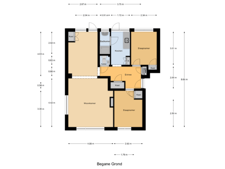 Vanuit deze centrale ruimte zijn vrijwel alle vertrekken direct toegankelijk: de kamer en suite, de keuken, beide slaapkamers en de toiletruimte. De hal beschikt over twee kasten waarvan in één ervan de cv-ketel is geplaatst.