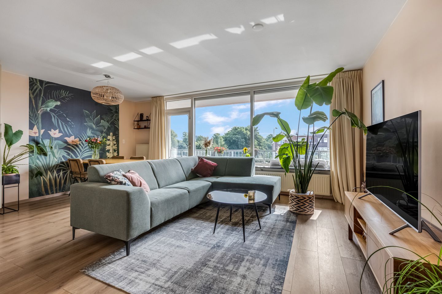 De woonkamer voelt direct gezellig en verzorgd aan. Grote ramen zorgen voor veel licht, terwijl de mooie vloer en warme tinten op de muren voor een huiselijke sfeer zorgen. De open keuken sluit hier mooi op aan, waardoor koken en wonen prettig in elkaar overlopen. Er is plek voor een knusse zithoek en eettafel, en via de deur stap je zo het balkon op met een vrij uitzicht over de straat.
